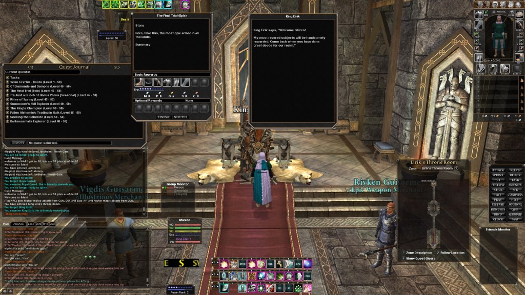 Questline for the Epic Armor via the King in the capital city of Jorhdeim